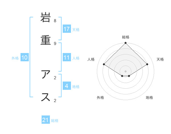 岩重 アスさんの天格は17画の4点!