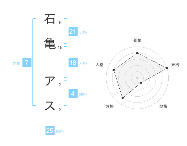 石亀 アスさんの天格は21画の5点!
