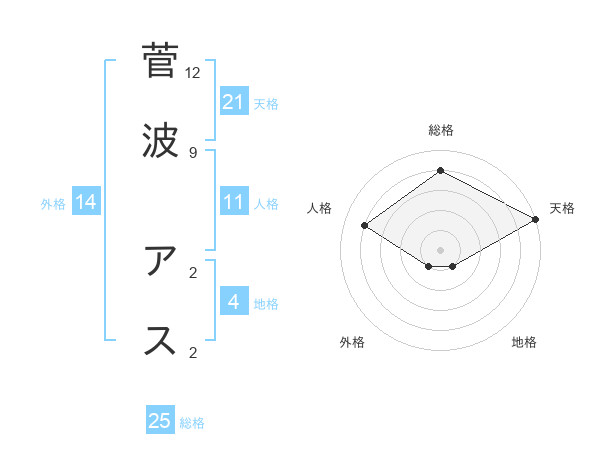 菅波 アスさんの天格は21画の5点!