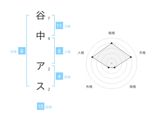 谷中 アスさんの総格は15画の4点!