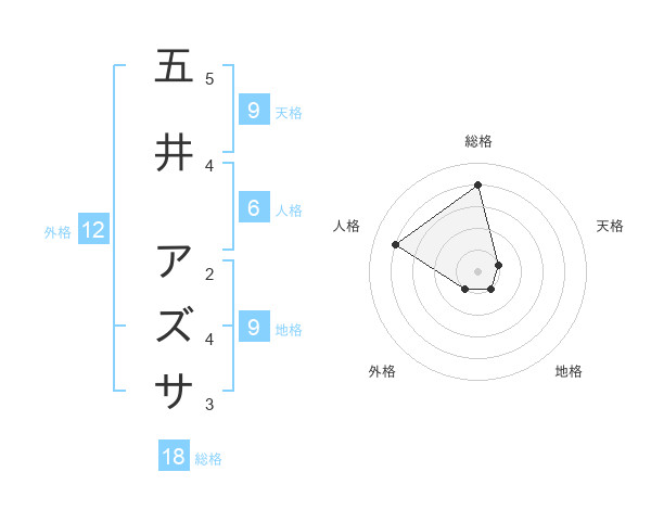 五井 アズサさんの総格は18画の4点!