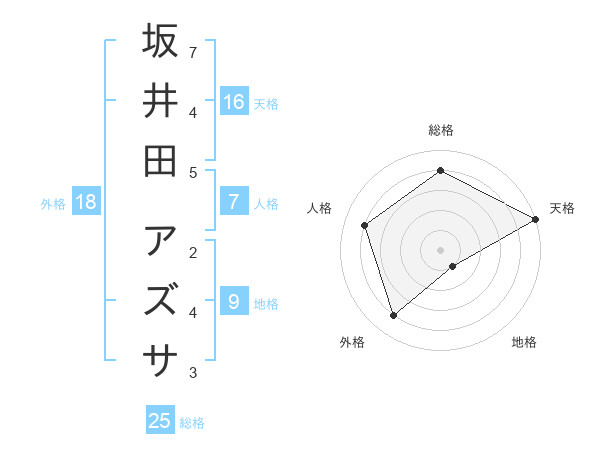 坂井田 アズサさんを姓名の画数から五運を鑑定