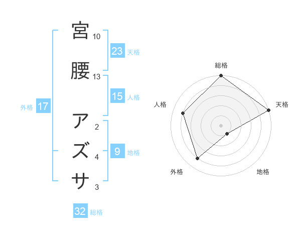宮腰 アズサさんを姓名の画数から五運を鑑定