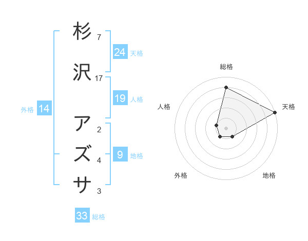 杉沢 アズサさんを姓名の画数から五運を鑑定