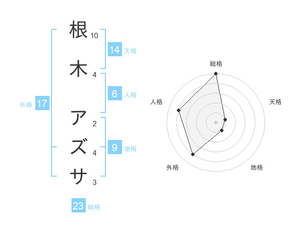 根木 アズサさんの総格は23画の5点!