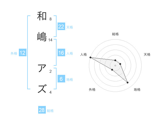 和嶋 アズさんを姓名の画数から五運を鑑定
