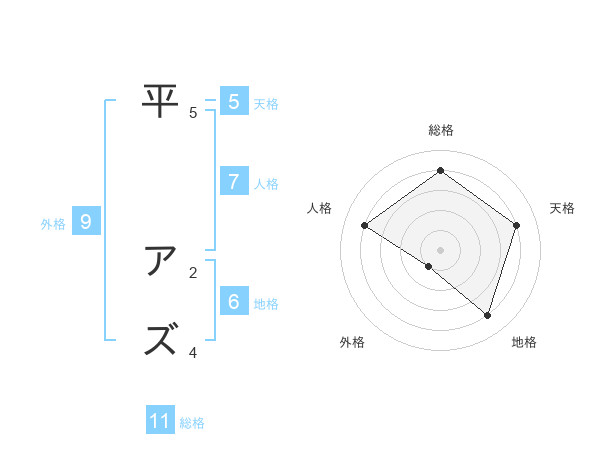 平 アズさんの天格は5画の4点!