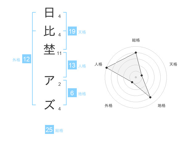 日比埜 アズさんを姓名の画数から五運を鑑定