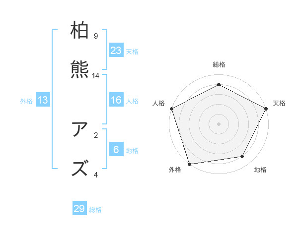 柏熊 アズさんを姓名の画数から五運を鑑定