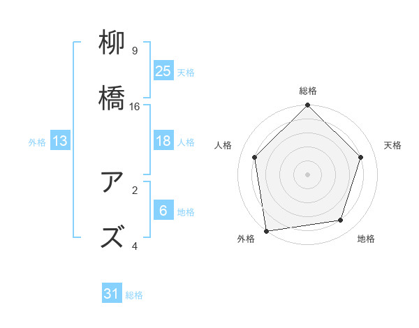 柳橋 アズさんの外格は13画の5点!