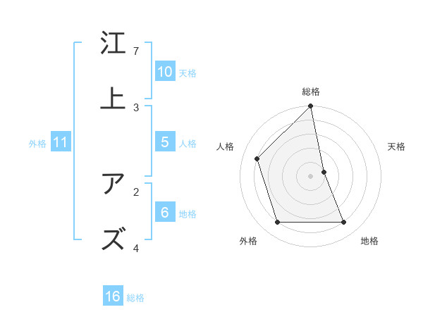 江上 アズさんの外格は11画の4点!