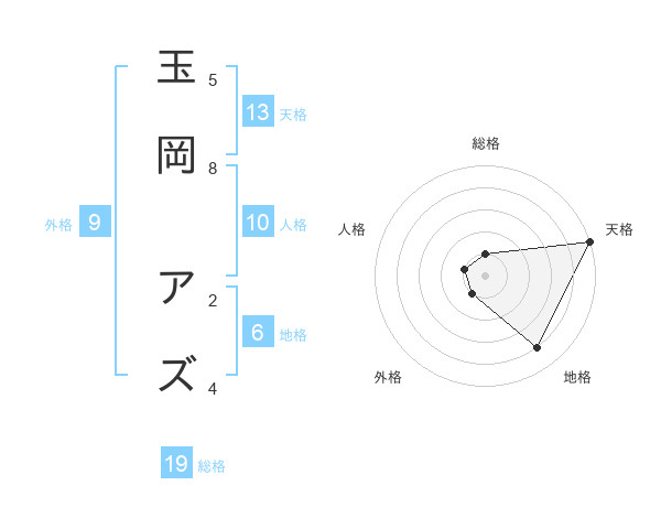 玉岡 アズさんの天格は13画の5点!
