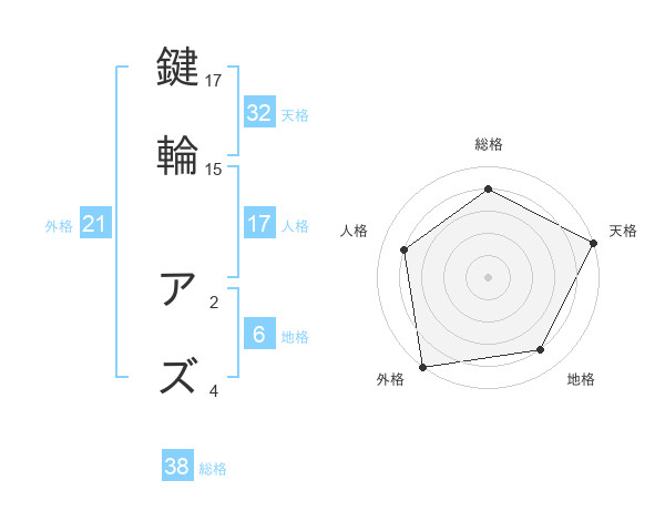 鍵輪 アズさんの総格は38画の4点!