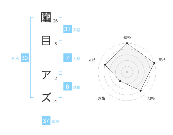 鬮目 アズさんの天格は31画の5点!