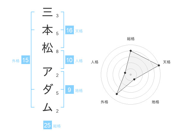 三本松 アダムさんを姓名の画数から五運を鑑定