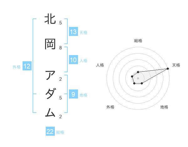 北岡 アダムさんを姓名の画数から五運を鑑定