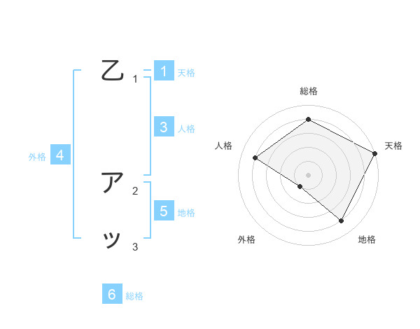 乙 アッさんの天格は1画の5点!