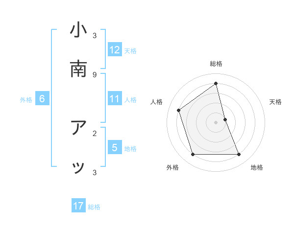 小南 アッさんの地格は5画の4点!