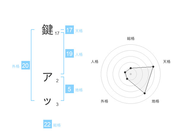 鍵 アッさんの総格は22画の1点!