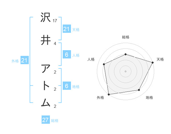 沢井 アトムさんを姓名の画数から五運を鑑定