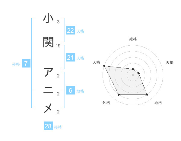 小関 アニメさんの人格は21画の5点