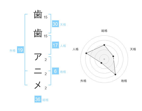 歯歯 アニメさんを姓名の画数から五運を鑑定