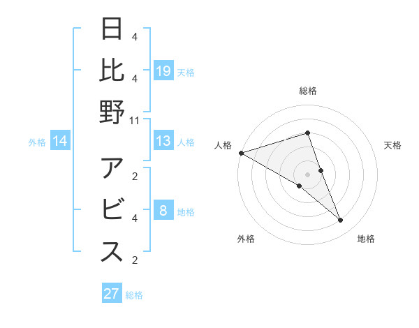 日比野 アビスさんを姓名の画数から五運を鑑定