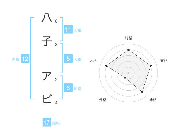 八子 アビさんの総格は17画の4点!