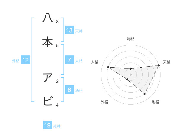 八本 アビさんの天格は13画の5点!