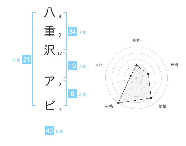 八重沢 アビさんの総格は40画の2点!