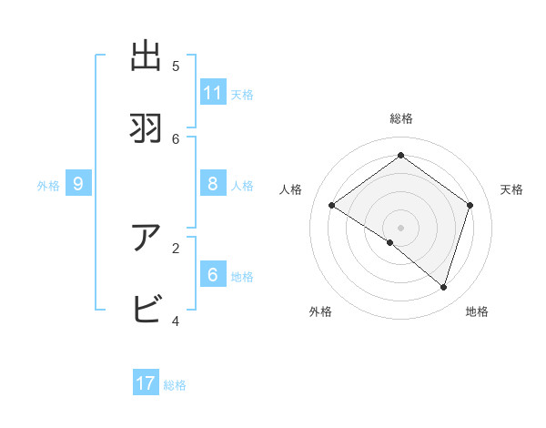 出羽 アビさんの総格は17画の4点!