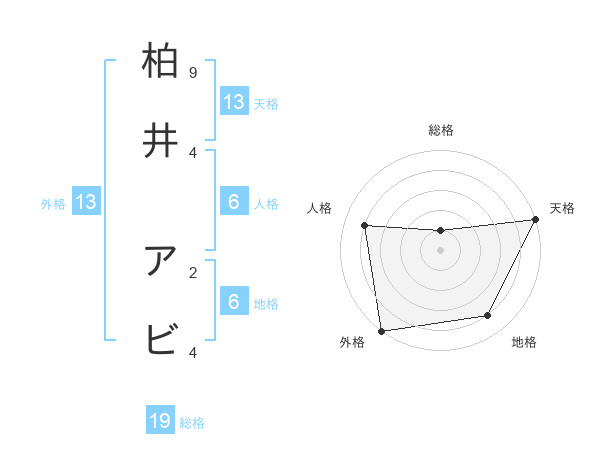 柏井 アビさんの天格は13画の5点!