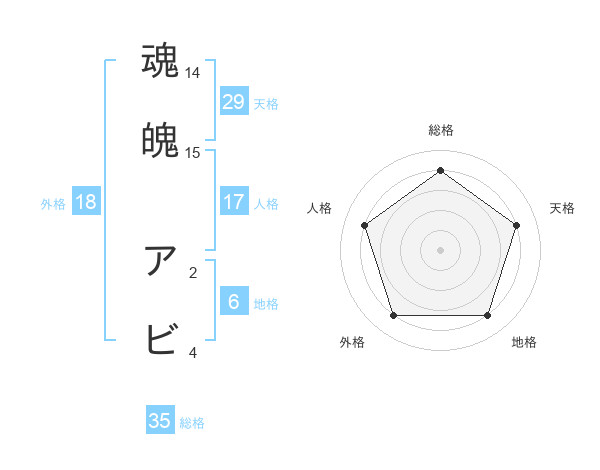 魂魄 アビさんを姓名の画数から五運を鑑定
