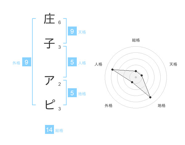 庄子 アピさんの総格は14画の1点!