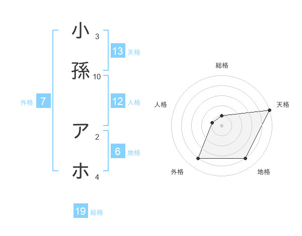 小孫 アホさんの天格は13画の5点!