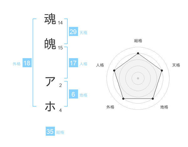 魂魄 アホさんを姓名の画数から五運を鑑定