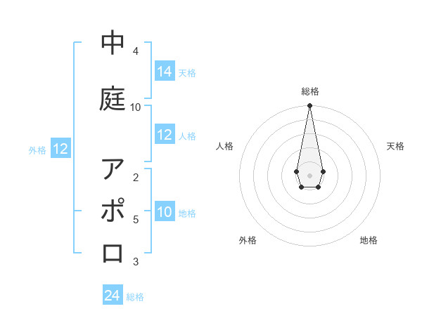 中庭 アポロさんの総格は24画の5点!