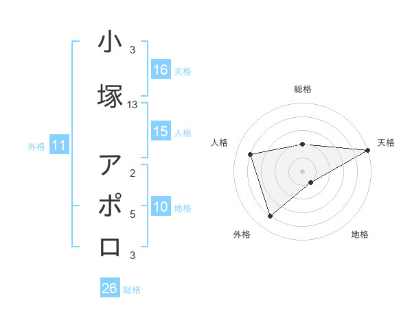 小塚 アポロさんの天格は16画の5点!
