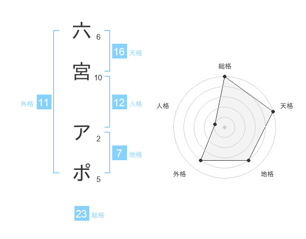 六宮 アポさんの総格は23画の5点!