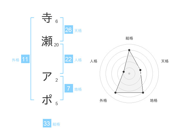 寺瀬 アポさんを姓名の画数から五運を鑑定