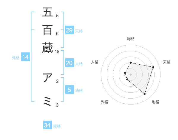 五百蔵 アミさんの総格は34画の2点!