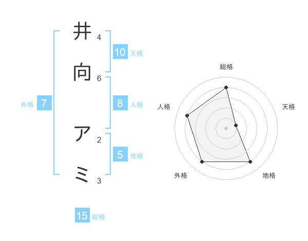 井向 アミさんの総格は15画の4点!