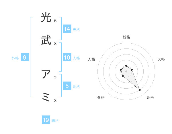 光武 アミさんの総格は19画の1点!