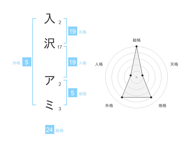 入沢 アミさんの総格は24画の5点!
