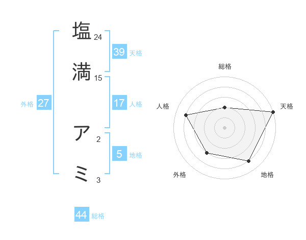 塩満 アミさんの天格は39画の5点!
