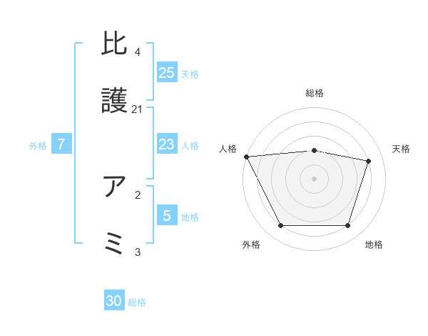 比護 アミさんの人格は23画の5点!