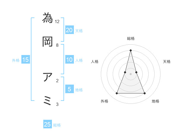 為岡 アミさんの天格は20画の1点!