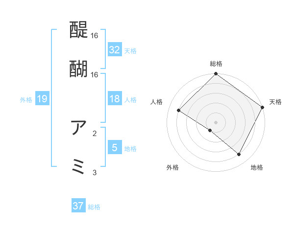 醍醐 アミさんの総格は37画の5点!