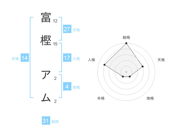 富樫 アムさんの総格は31画の5点!
