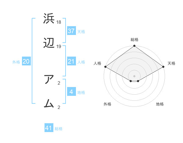 浜辺 アムさんを姓名の画数から五運を鑑定